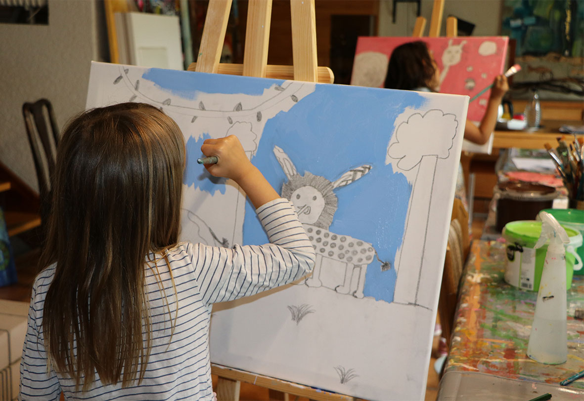 In meinen Kinderkursen liegt es mir besonders am Herzen, die Kreativität, Fantasie und Begeisterungsfähigkeit der Kinder spielerisch zu fördern. Mit vielen unterschiedliche Materialien wird gebastelt, gezeichnet, geplant, kombiniert, geklebt, gemalt und vieles mehr. Hierbei wird zugleich die Konzentration, Geschicklichkeit und Feinmotorik der Kinder trainiert.